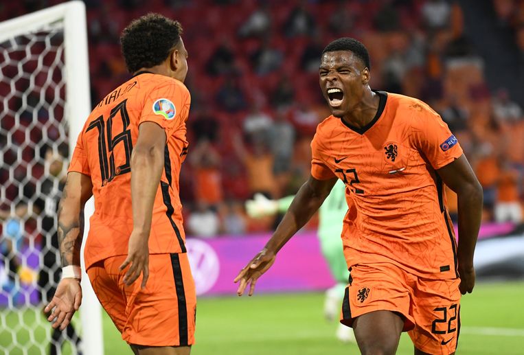 Denzel dumfries beats jadon sancho to a header in the nations league semiscredit: